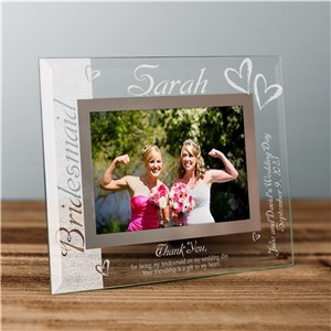 Our selection of personalized picture frames for bridesmaids will become keepsakes that they cherish for a lifetime. They can always remember their important role in your big day, and you can thank them for helping make your wedding so unforgettable. We offer a variety of options, from glass to printed bridesmaid frames. Start shopping for your girls!