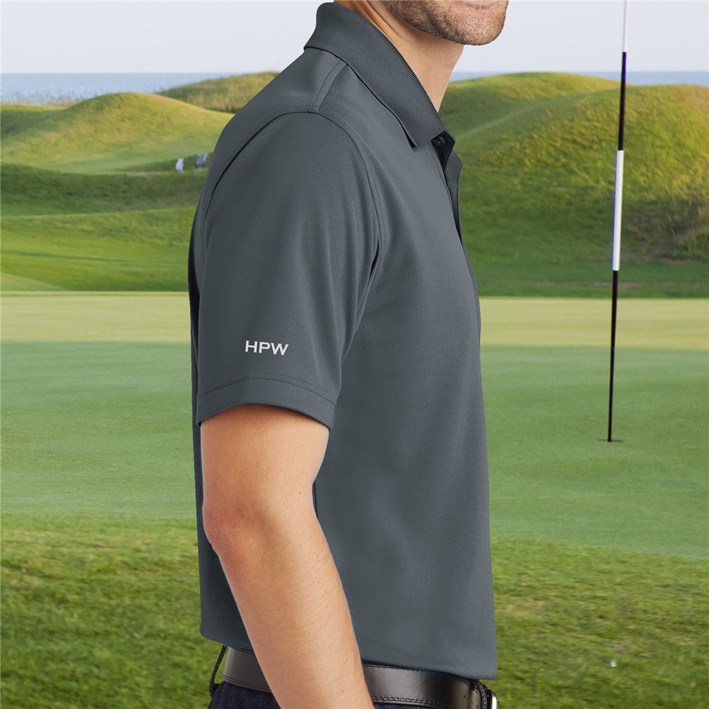 Get the golfer in your life an apparel item that is sure to make him look sporty out on the course with our personalized grey Port Authority polo shirt. Personalize this Grey Polo Shirt with any name or initials  on the sleeve.
