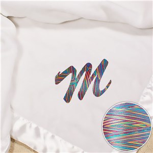 .Name or Initial Embroidered Baby Fleece Blanket with Rainbow Thread