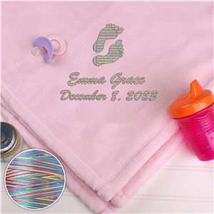 .Personalized Baby Girl Mink Blanket with Rainbow Thread