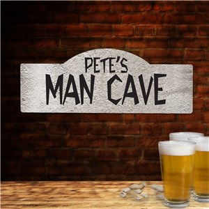 Every man deserves a space of his own. With this man cave wall sign, he can let everyone know where his space lies. Our personalized man cave art includes any custom name up to 16 letters and features a rugged, diamond-plate steel look cleverly printed on an 18" x 12" sturdy metal sign.