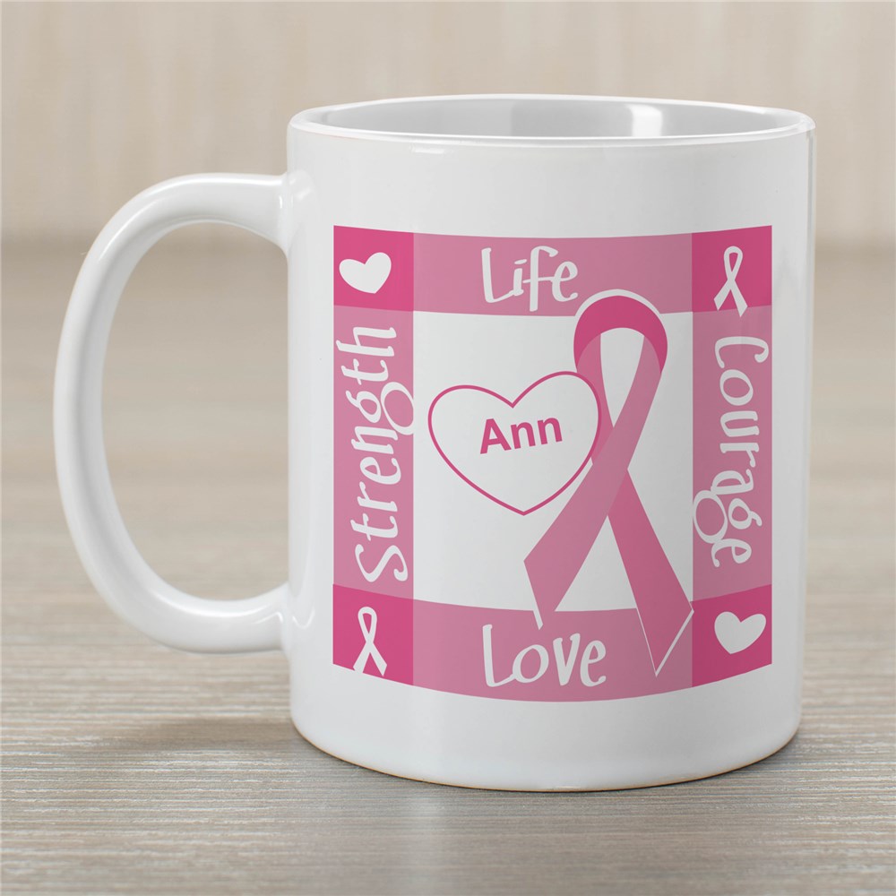 Life, Courage, Love, Strength all proudly describe every portion of your mind, body and soul fighting and supporting all those dealing with the devastating disease of Breast Cancer. Rise up and show your commitment to ending this disease with your own Custom Printed Ribbon of Heart Coffee Mug.