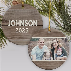 .Personalized Wood Texture Ceramic Photo Ornament