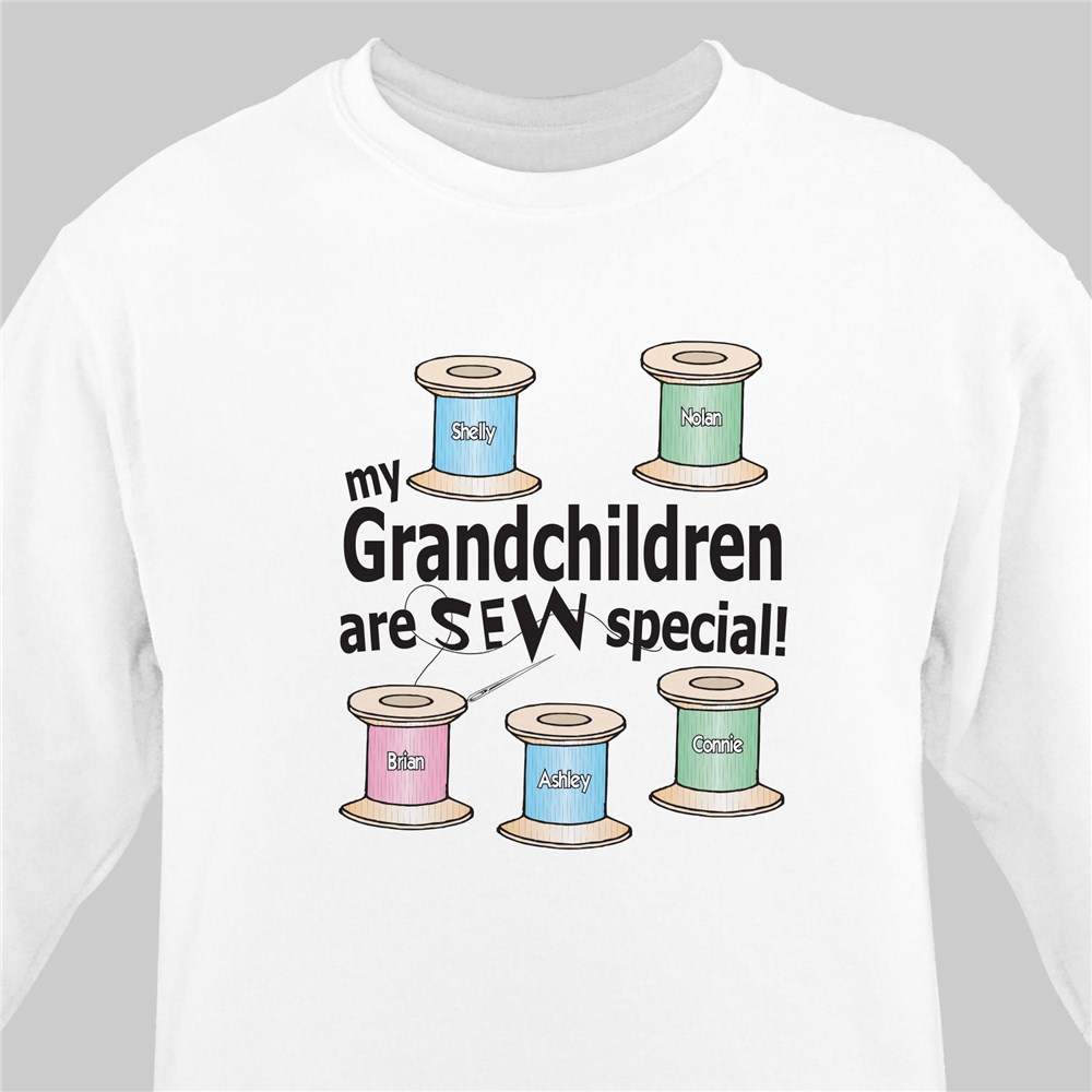 What a great gift idea for a quilter. Our personalized quilters shirt shows off your little quilting helpers, each on their own color thread spool. Fun & clever Personalized Grandma Shirts are sure to make your favorite sewing expert smile with joy.
