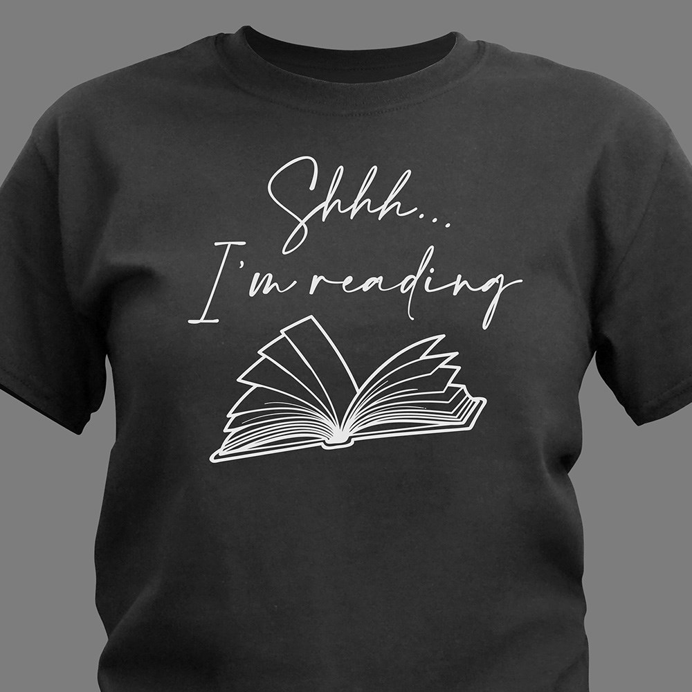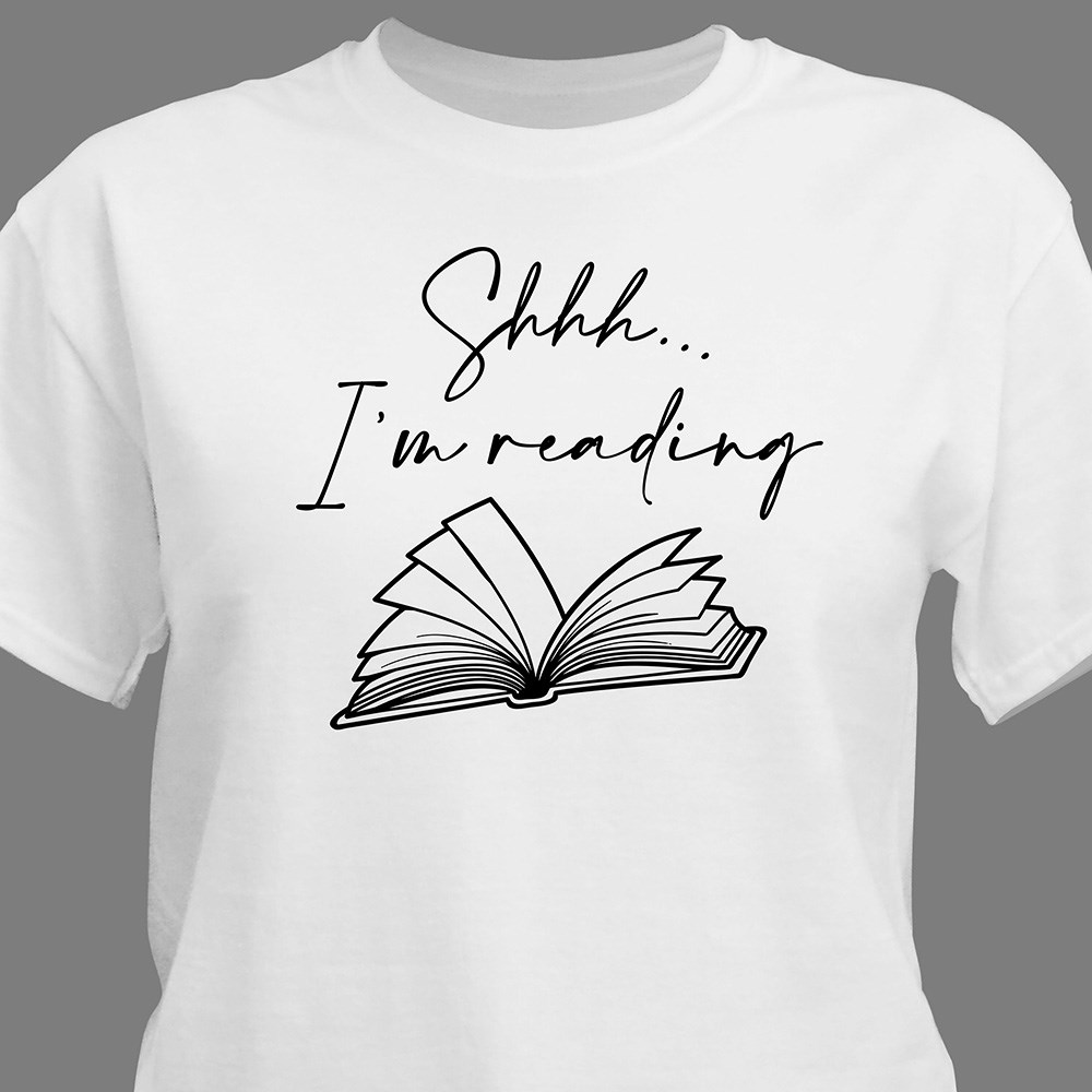Our Shh I'm Reading T-Shirt is a must have wardrobe addition for any avid reader!