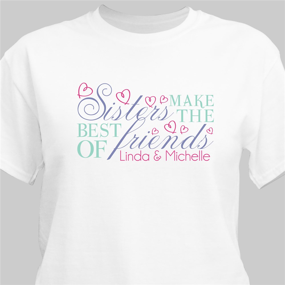 Your sister will love being constantly reminded of how great she really is every time she wears one of these Best Friends Personalized T-Shirts. Make it an attractive & fun loving gift for her upcoming birthday, Christmas or any gift giving occasion. This Sisters Personalized Shirt is available on our premium preshrunk 100% cotton T-Shirts, machine washable in adult sizes S-3XL. Free personalization of any name is included.