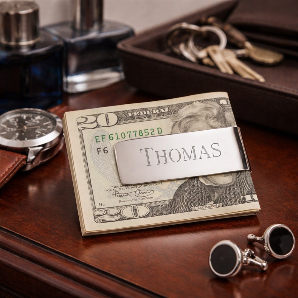Sleek Silver Money Clip | Engraved Groomsmen Accessories