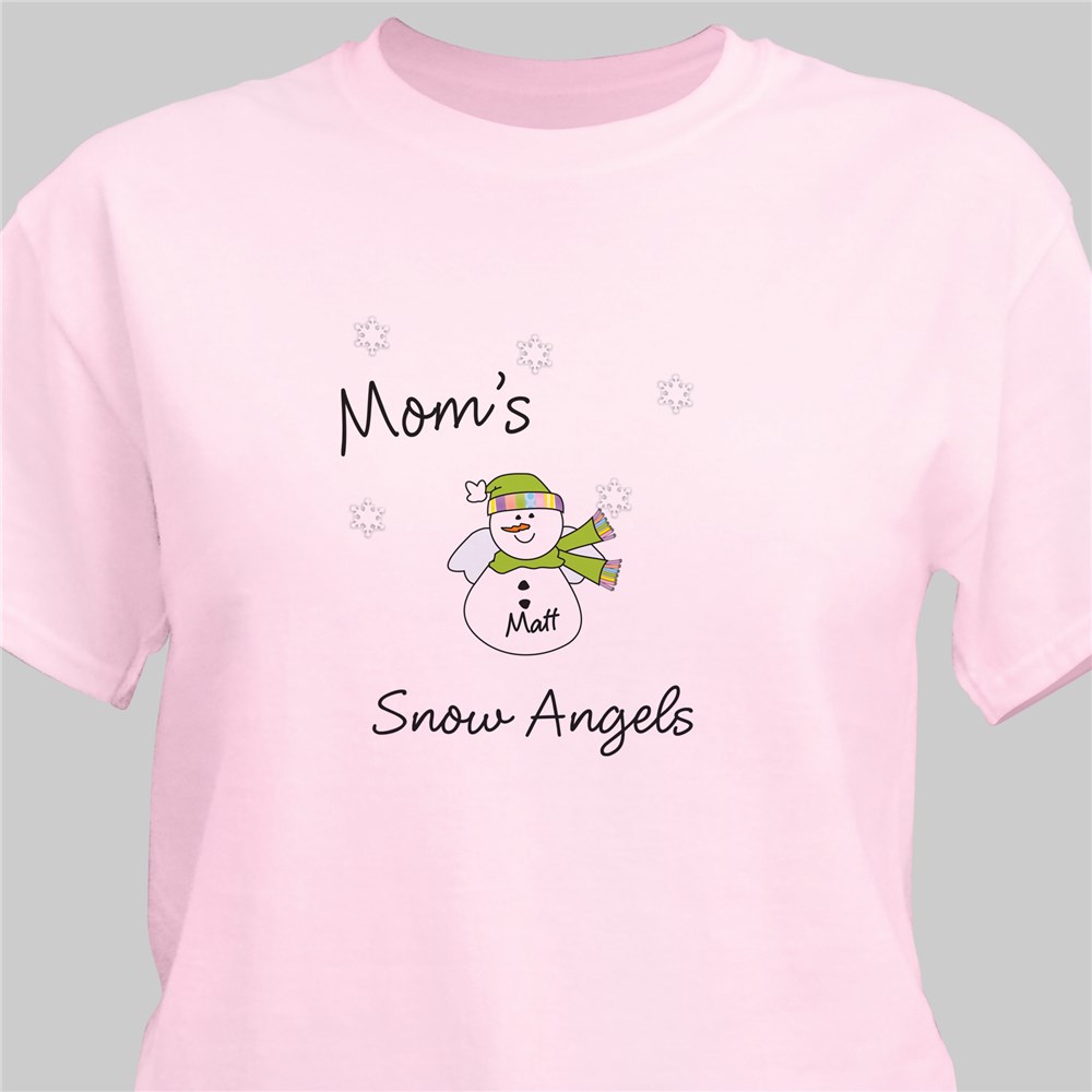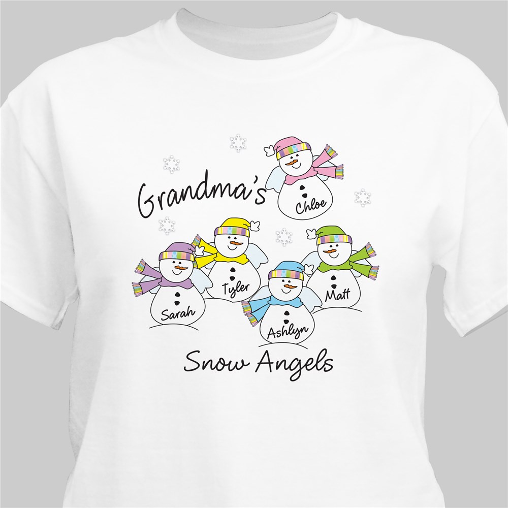 Show off all your snow loving little ones with one of these Personalized T-Shirts. The Snow Angels Personalized Shirt is printed on our 100% Cotton machine washable white shirt available in adult sizes S-3XL. Includes FREE Personalization! Personalized with any title and up to 30 Names.
