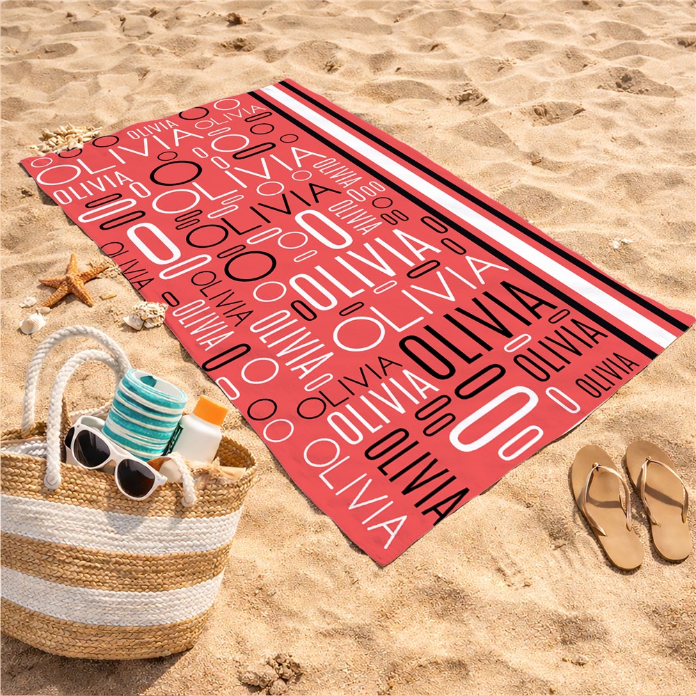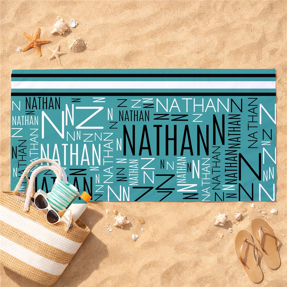Our Sporty Stripes Word Art Beach Towel will make swimming even more fun this summer.