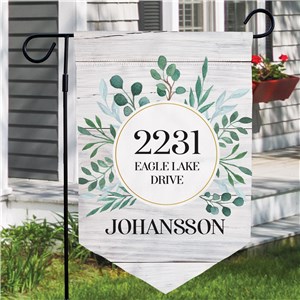 .Personalized Leafy Wreath Address Pennant Garden Flag