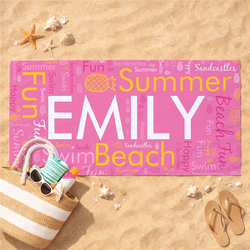 Create a fun towel for the beach or pool parties this summer with our Summer Fun Word Art Beach Towel.Using our word-art tools, add your favorite words and some cool summer colors to create a unique towel made just the way you like it.