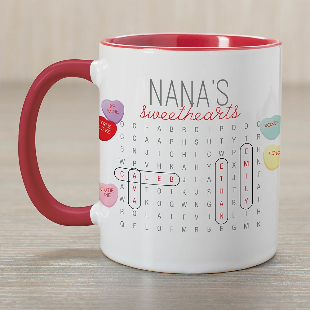 Give Mom or Grandma a special gift to show how loved she is with our Sweethearts Word Search Two Tone Red Handle Mug!