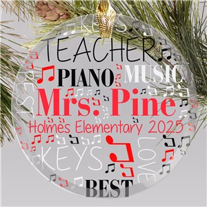 .Personalized Music Teacher Word Art Round Glass Ornament