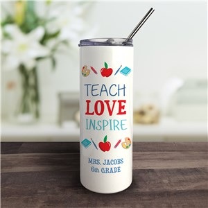 .Personalized Love to Teach Tumbler with Straw