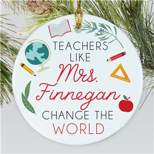 .Personalized Teacher Holiday Ornament | Ceramic