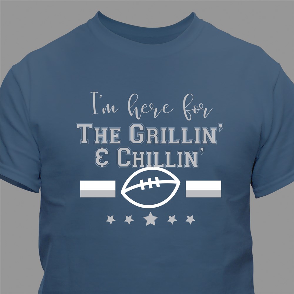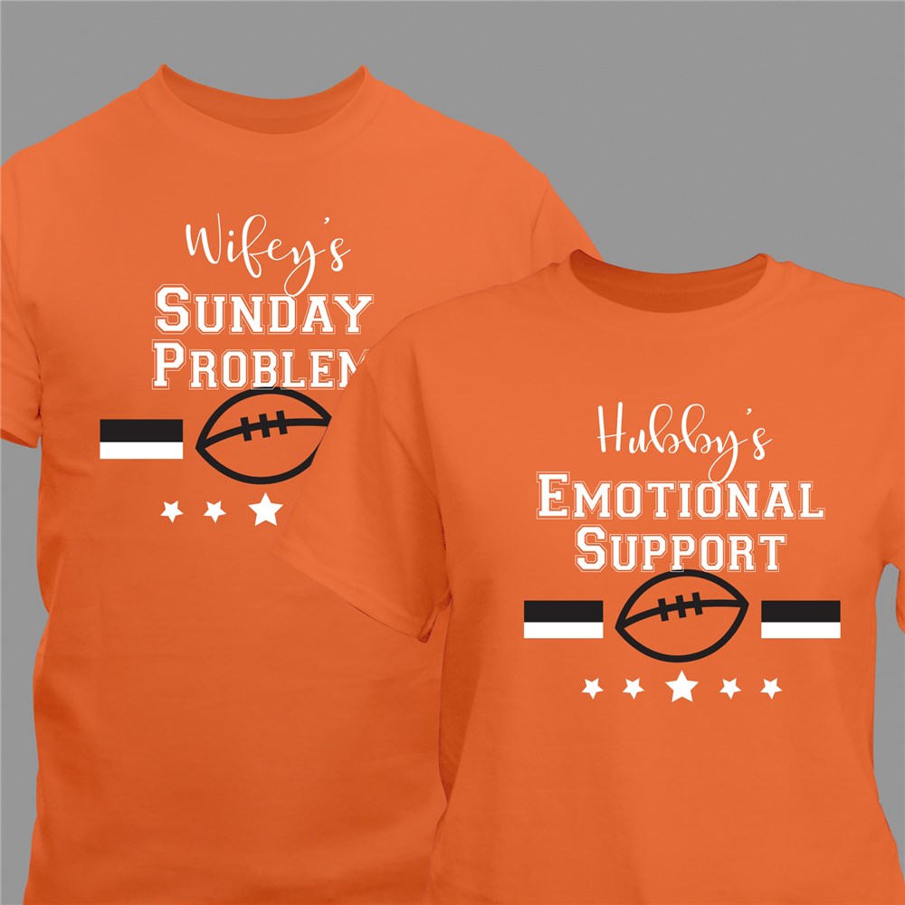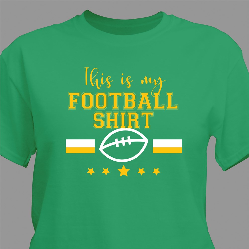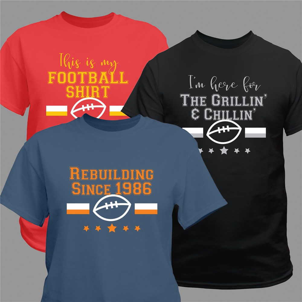 Show your support for your favorite activity during the big game whether it's the commercials, snacks, half time show or your favorite team!This t-shirt can be fully customized with the team colors (The words, bottom line and stars will change with color option 1 and the top line and football will change with color option 2.)