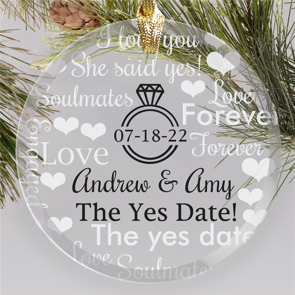 The Yes Date Word Art Round Glass Personalized Engagement Ornament
