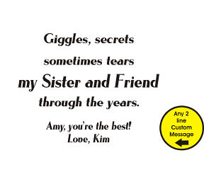 We also carry an extensive line of Personalized Sister gifts. Show your Sister how much you love her with our Personalized Sister shirts & Sister Keepsakes!