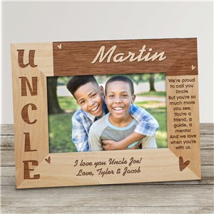 You think he's the best uncle. Tell him so with these uncle Personalized Wood Picture Frames. Our personalized wooden picture frames for uncle comes in three sizes and can be customized with any name and two-line personal message. Our personalized uncle photo frame comes in three sizes. Please choose "I" or "We" or the poem when creating this wonderful keepsake. Your uncle will have never felt so special!