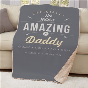 He'll love showing off all his favorite people when he snuggles up in his Personalized Favorite People Word-Art Sherpa Throw. This soft throw blanket is perfect for Grandpa, Dad, or any special man in your life. Personalize one for a Father's Day gift with any title surrounded by word art names. If you would like to see another rendition of your word art personalized Dad gifts, simply select the View Your Personalization button again. This will automatically create another version for review.