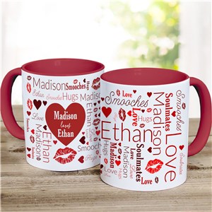 .Couples Heart Word Art Two Tone Red Handle Mug