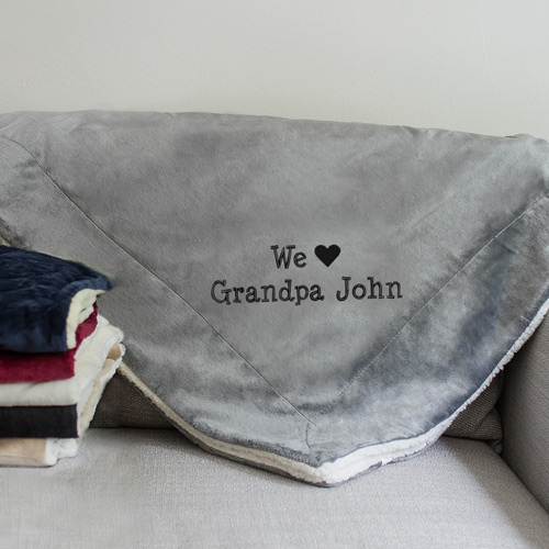 Let those you really love snuggle up with this personalized Embroidered We Love Sherpa Blanket this winter.