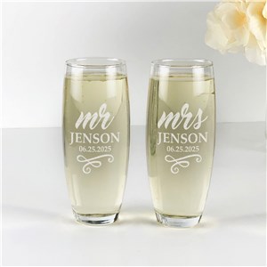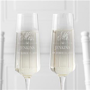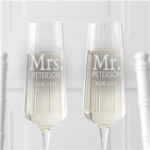 .Engraved Mr. and Mrs. Champagne Estate Glasses Set
