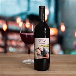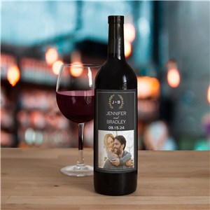 Personalized Wreath Photo Wedding Wine Bottle Labels