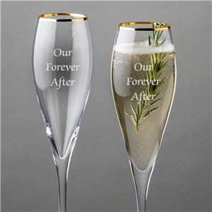 .Engraved Custom Message Gold Rim Tulip Champagne Flute Set