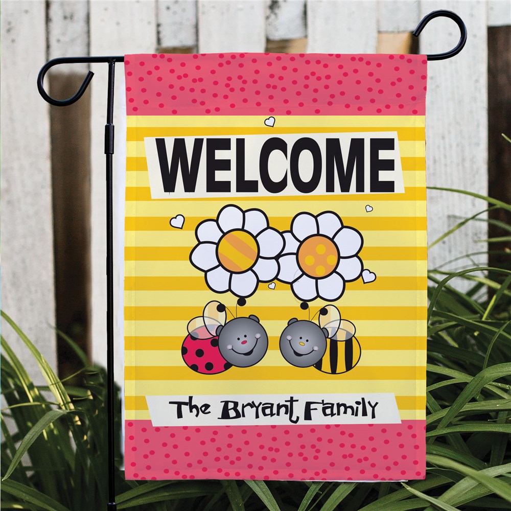Our Personalized Spring Garden Flag is a great accent to any yard or garden. Decorate your front yard with this fun colorful Personalized Welcome Bee Flag for Spring. Free personalization of any one line message is included.