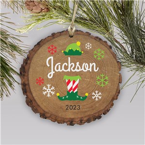 .Personalized Elf Barky Holiday Wood Ornament
