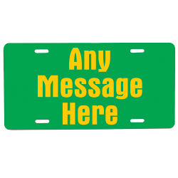Create a Personalized License Plate as a funny, novelty Birthday gift or as a unique Just Married License Plate gift. Our Personalized License Plate is the perfect gift for anyone. Personalize your license plate with any three lines of text. Please choose from 10 colors for Personalized license plate color and text color.